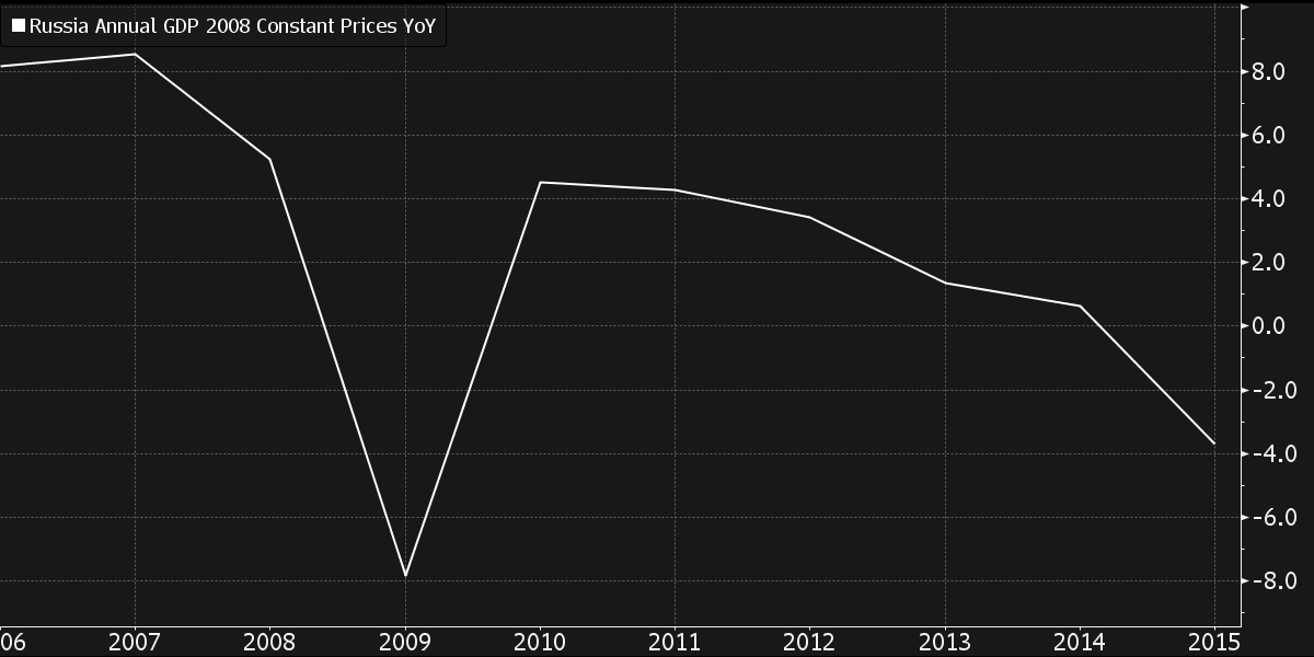 Russia's economy contracted by 3.7% last year, the most since 2009 http://bloom.bg/1RIcLMs pic.twitter.com/eZKLCcBbAC