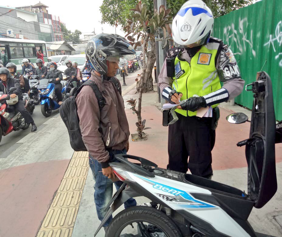 12:59 Polri penindakan terhadap para Pemotor yg melintas di trotoar di Jl. Dewi Sartika Jaktim. Trotoar hanya bisa dilintasi oleh pejalan kaki.pic.twitter.com/xFK553SpOa