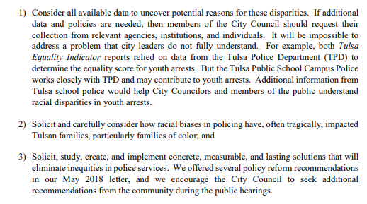 Specifically, LDF is asking Tulsa City Council to: 1. Consider all info and data to uncover potential reasons for racial disparities. 2. Solicit & examine how racial biases in policing have impacted Black Tulsans 3. Develop solutions to end racial disparities in policing.pic.twitter.com/9lLZ2gdE9m