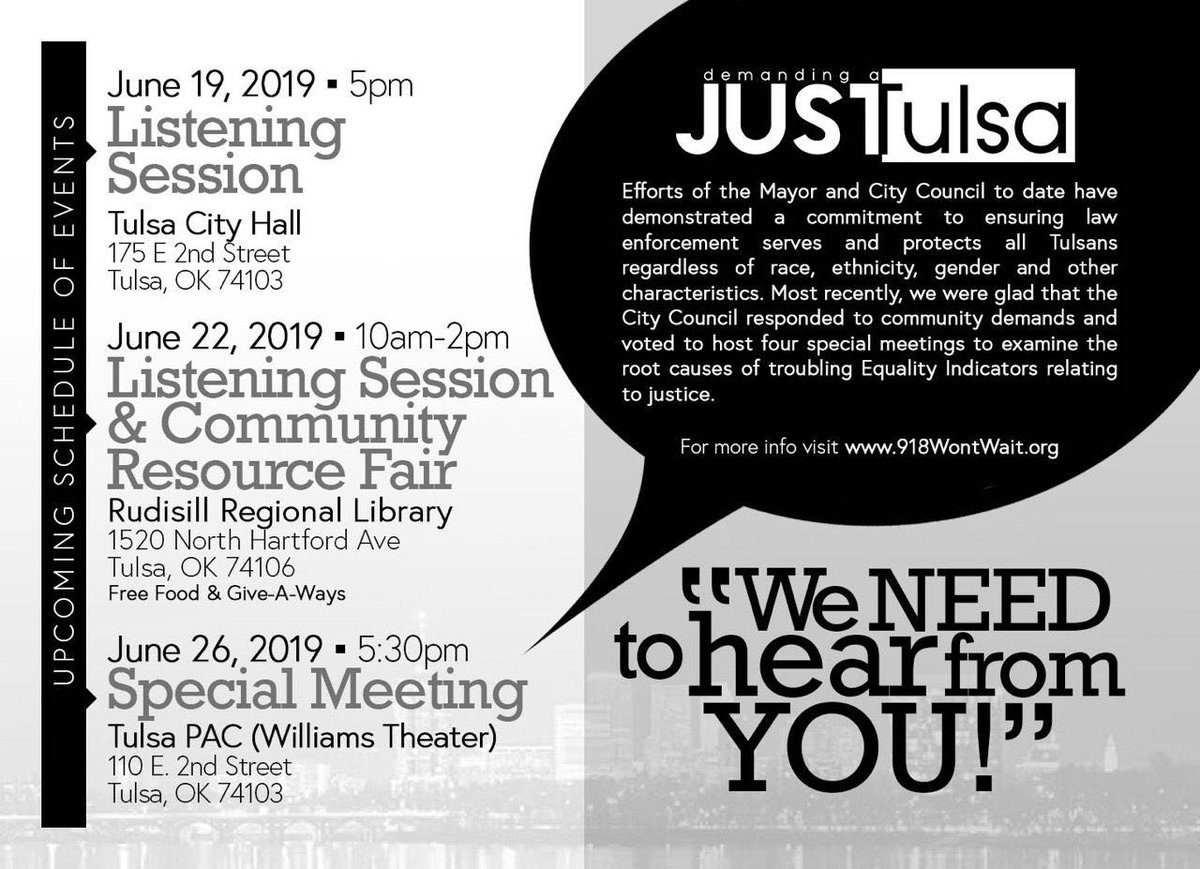 HAPPENING NOW: #CivilRights orgs and #Tulsa City Council are having a public listening session on the racial disparities in policing. #PoliceReform