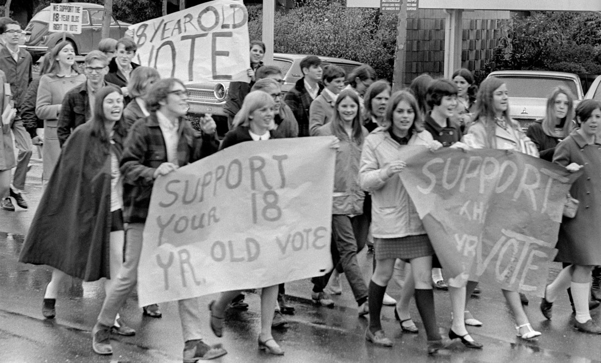 Following the #CivilRights Movement, young adults rallying against the Vietnam War also pushed for a lowered voting age. In 1971, the 26th amendment was added to the constitution and adults 18-21 were granted the right to vote.pic.twitter.com/JLrn6pS1Yz
