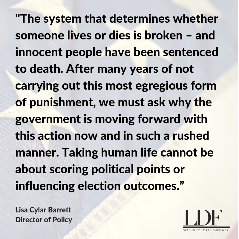 It is especially disturbing that on the day Emmett Till would've turned 78, if not for his horrific and racist murder, the DOJ announces they will restart administering the death penalty-- a barbaric and racially discriminatory punishment.https://twitter.com/NAACP_LDF/status/1154501817608261632 …