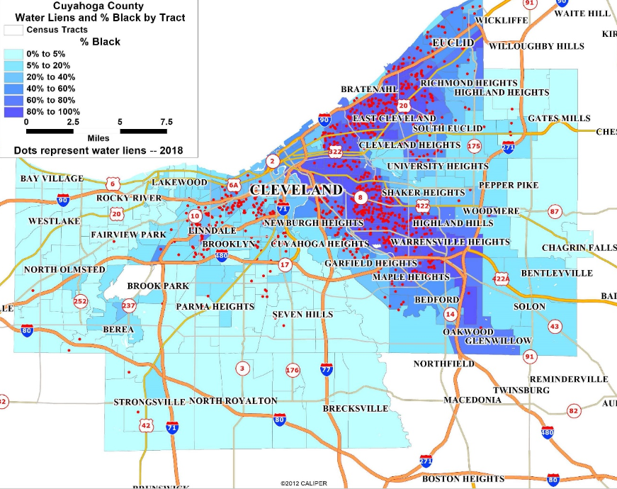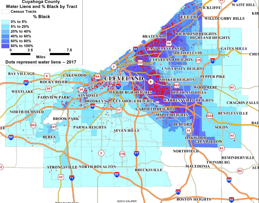 Cleveland Water has a systemic practice of placing water liens in majority-Black tracts in Cuyahoga County. In 2017, 68.9% of water liens were placed in majority-Black areas, while only 18% of water liens were in majority-white areas.pic.twitter.com/eh5Q9VOyOT