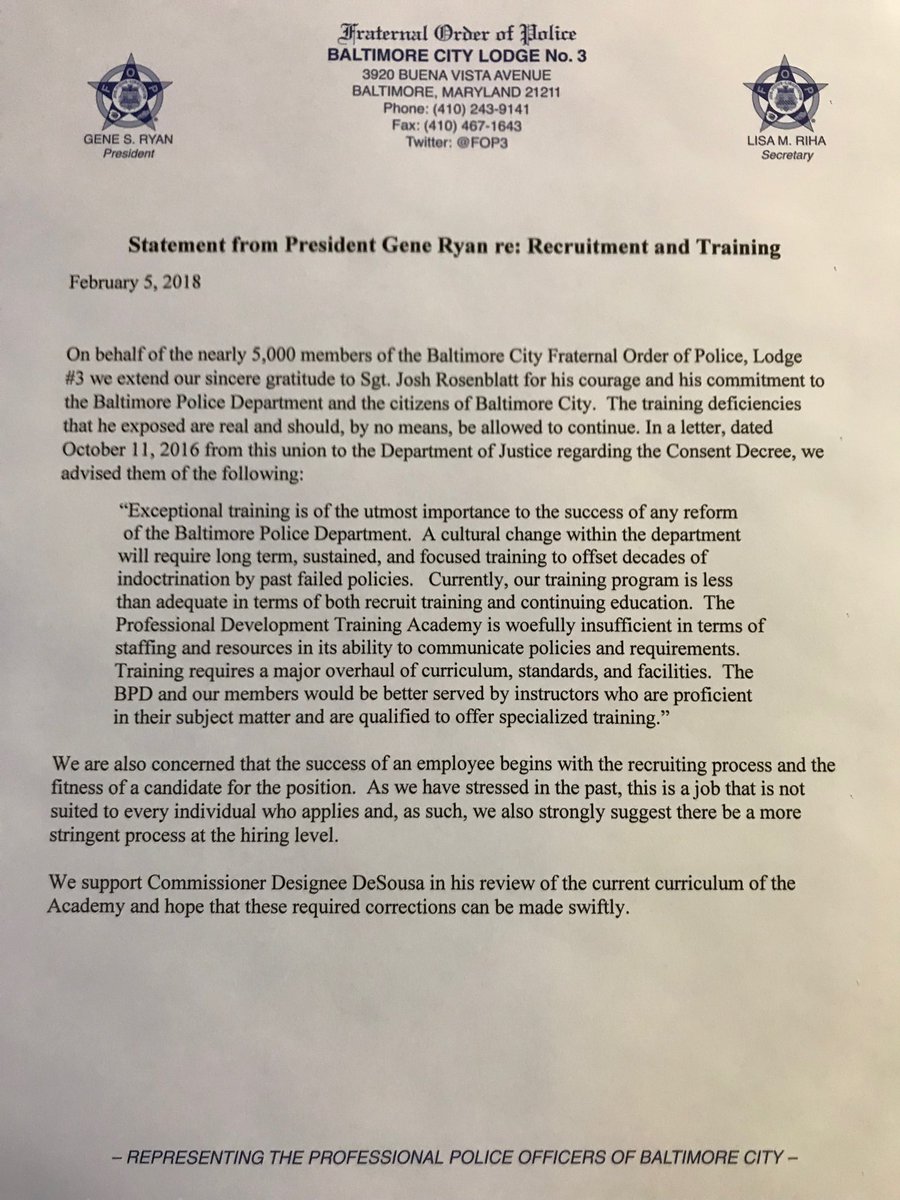 It is not often that a leading civil rights organization and Baltimore’s top police union agree that police recruits should master the basics of constitutional policing. http://www.baltimoresun.com/news/maryland/crime/bs-md-ci-union-academy-response-20180205-story.html …https://twitter.com/fop3/status/960555111285174272 …