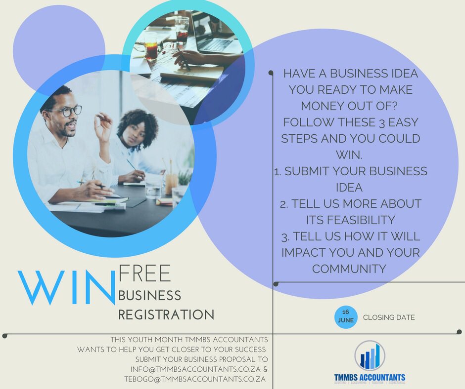 Let @TMMBSAccounting get your business to its destiny compliantly with a business start-up package inclusive of: - Company registration - BEE certificate - Tax clearance certificate - Share certificate Kindly find contact details