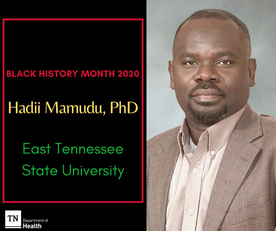 TDH Celebrates Black History Month! February 3: Hadii Mamudu, PhD Learn more: https://www.facebook.com/TNDeptofHealth/photos/a.294090735048/10157765283300049/?type=3&av=222603405048&eav=AfYrreTAkdaOTqFt81T2jygVsGceC1vy5EJXapQMvjtQIfs4f_SxCDV1ncJrovKMvTs&theater …