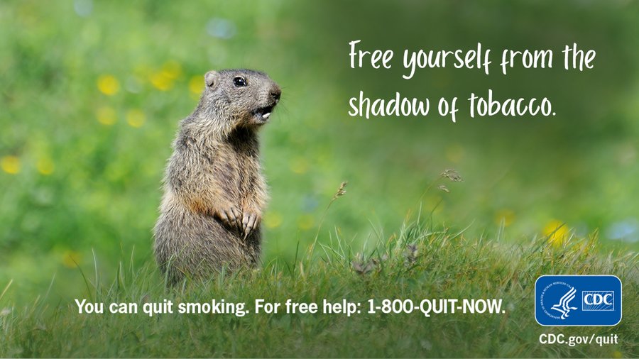 #GroundhogDay. For free help to quit, visit http://CDC.gov/quit or call us at 1-800-QUIT-NOW!pic.twitter.com/8lFVAC2v6z