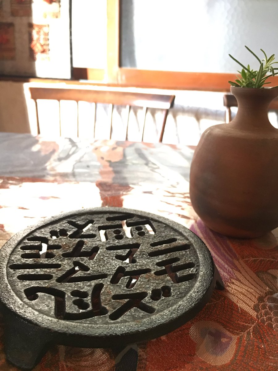雨にも負けず、風にも負けず。鉄瓶置き。和のゲストハウスに会うなぁ。 ラウンジに火鉢!プロジェクトが待ち遠しい。。。