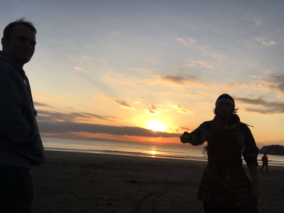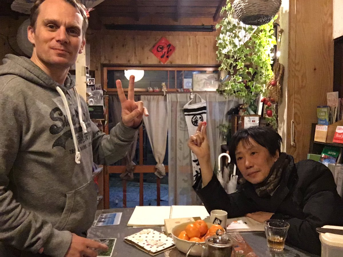 スイスのサミュエル。日本の2ヶ月の滞在中にまた来てくれた。伊達政宗の置物をプレゼントしてくれた。ゲストハウスの受付にお守りとして置いておくでござる。