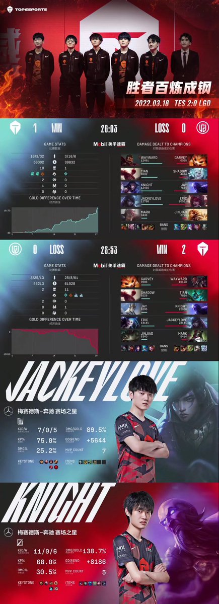 TES 2:0 LGD MVPs went to JackeyLove and knight! Winners are tempered into steel.We will do better in playoff!Thank you all for your support!