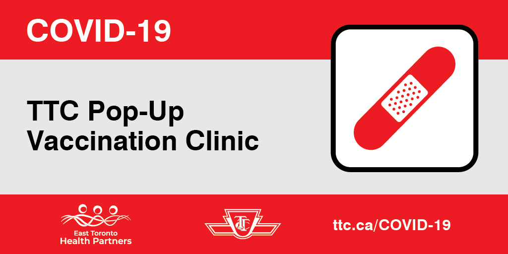 TTC will host two pop-up COVID-19 vaccination clinics at Warden and Islington stations from September 7 to 9. Partnering with
