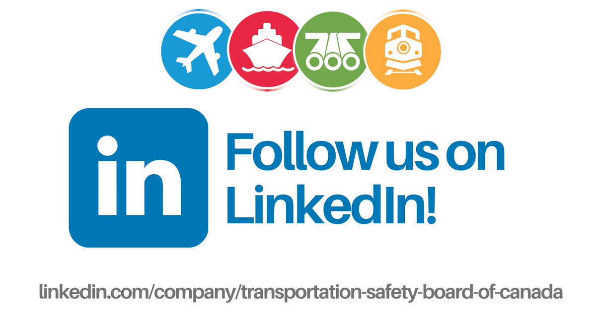 The people of the TSB are driven by our mandate to advance transportation safety in Canada. We identify safety issues and make recommendations to prevent similar occurrences in the future http://ow.ly/l9hM50Eml5n