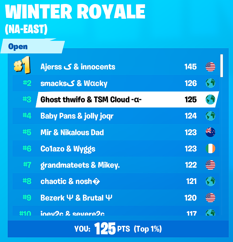@TSM_Clouds ($5,500) i recorded the session and can show i didnt do the bug on purpose but looking at the leaderboards compared to yesterday i can't feel as satisfied placing in this. 2nd place team jumped 80 - 126 ptspic.twitter.com/TGrl0AfPZ4