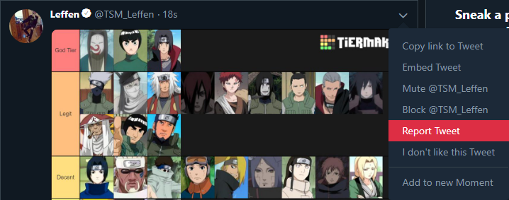I only find it funny that the show is called Naruto and he's in the Irrelevant tier. Rock Lee God tho