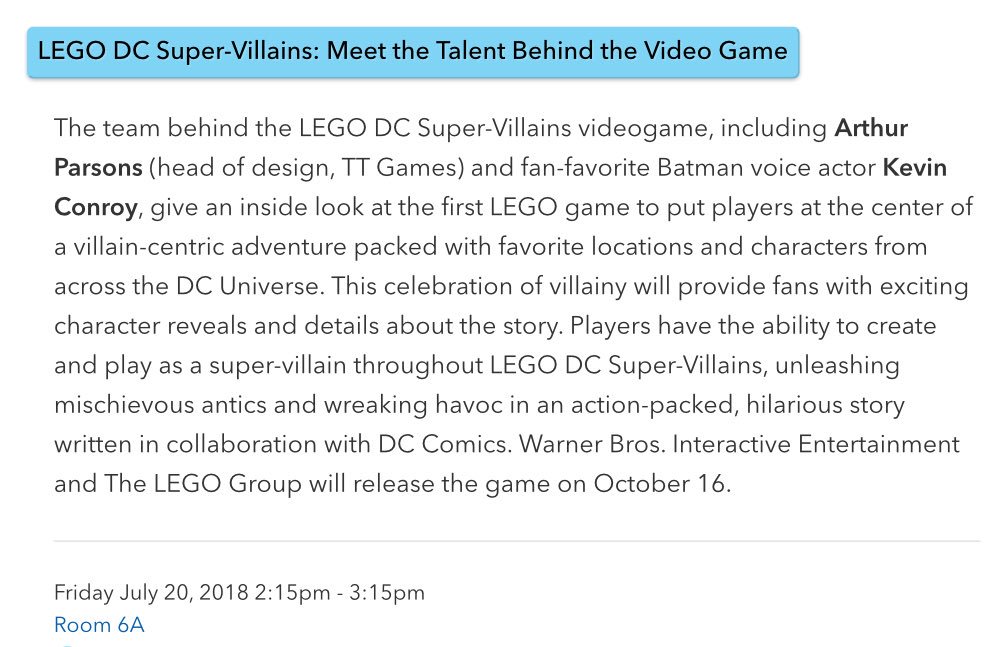 @LEGO_Group@TTGames#LEGODCSuperVillains: Meet the Talent Behind the Video Games panel at#SDCC2018 next week! Join us Fri 7/20 at 2:15pm details here: http://sched.co/FSlf pic.twitter.com/OJAXNLFOCNধন্যবাদ। আপনার সময়রেখাকে আরো ভালো করে তুলতে টুইটার এটিকে ব্যবহার করবে। পূর্বাবস্থায়পূর্বাবস্থায় -