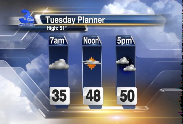Missed this mornings forecast with @JamesGilbertTV3 ? Watch the full forecast at http://tv3winchester.com/weather pic.twitter.com/eAISlv9Sb4