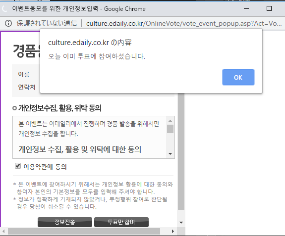 やっぱり毎日投票できますね。こういう画面が出たらOKです。登録頑張って挑戦してくれてる人がいて嬉しい~