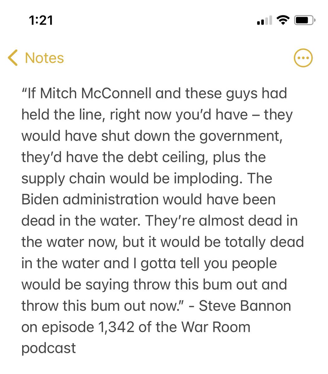 On his podcast, Steve Bannon is explicitly calling on Republicans to do things to destroy the economy and hurt Biden. No surprise to anyone who has been paying attention, but not sure I’ve heard it be said this explicitly.pic.twitter.com/UtplAR3b44
