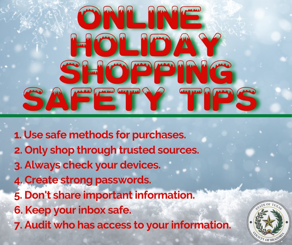 Stay protected when doing your Online Holiday Shopping. Here are some safety tips to remember:pic.twitter.com/Ko1FgHbWwP