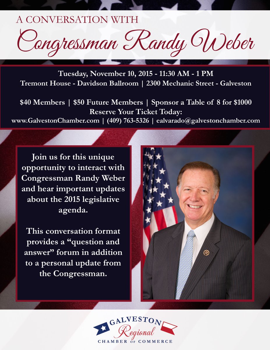 Join me for a conversation on Tuesday, November 10! @GalvChamber #TX14pic.twitter.com/VcuZJYTquK