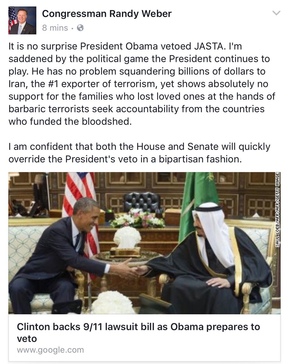 It is no surprise President Obama vetoed #JASTA.pic.twitter.com/canDioQz1d