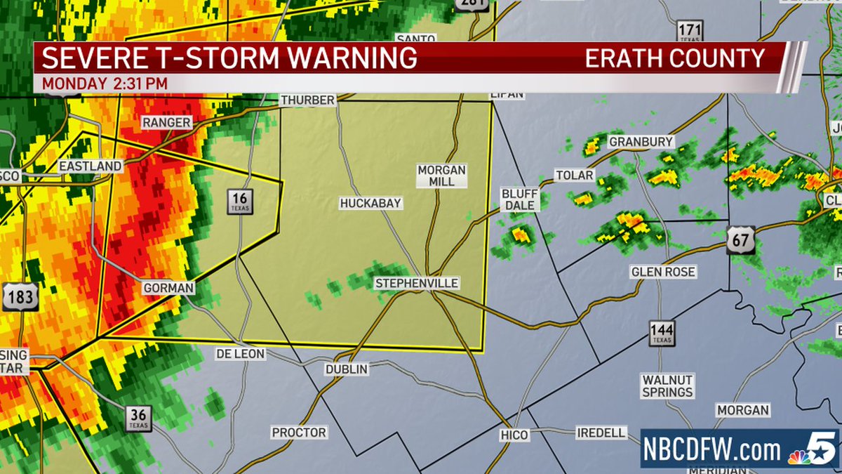 A SEVERE T-STORM WARNING has been issued for Erath County. Go to http://nbcdfw.com/weather?_osource=SocialNewsDeskTwit_KXAStxthundertruck … for updates and live