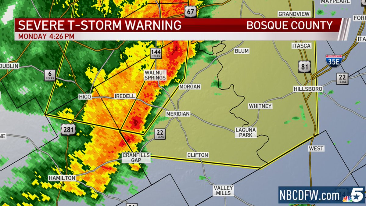 A SEVERE T-STORM WARNING has been issued for Bosque County. Go to http://nbcdfw.com/weather?_osource=SocialNewsDeskTwit_KXAStxthundertruck … for updates and live