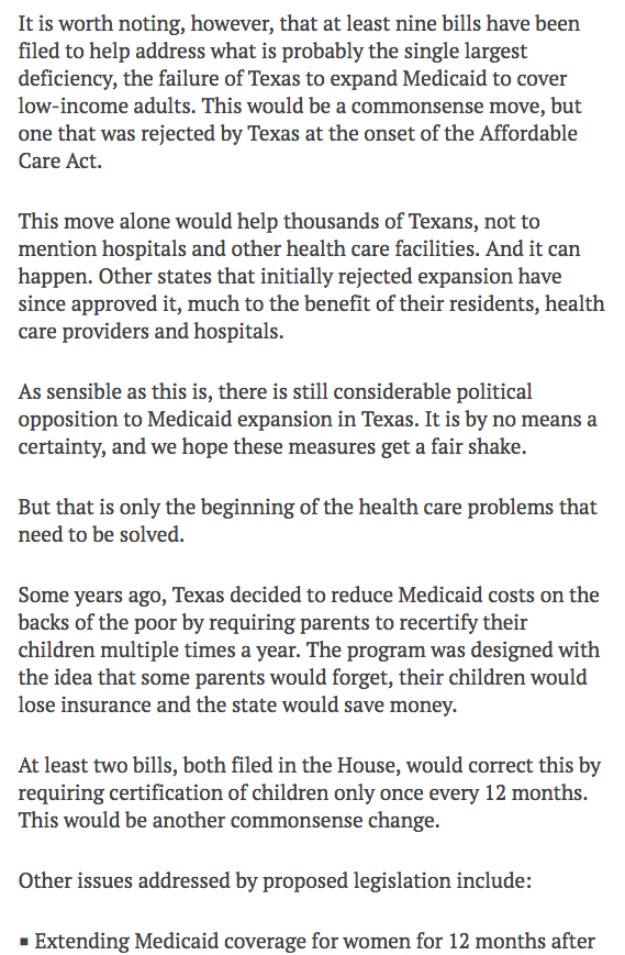 From Longview to Laredo and throughout Texas, voters overwhelmingly support expanding medicaid. Let's let them decide of #txlege won'thttps://twitter.com/covertexasnow/status/1097508537566220288 …