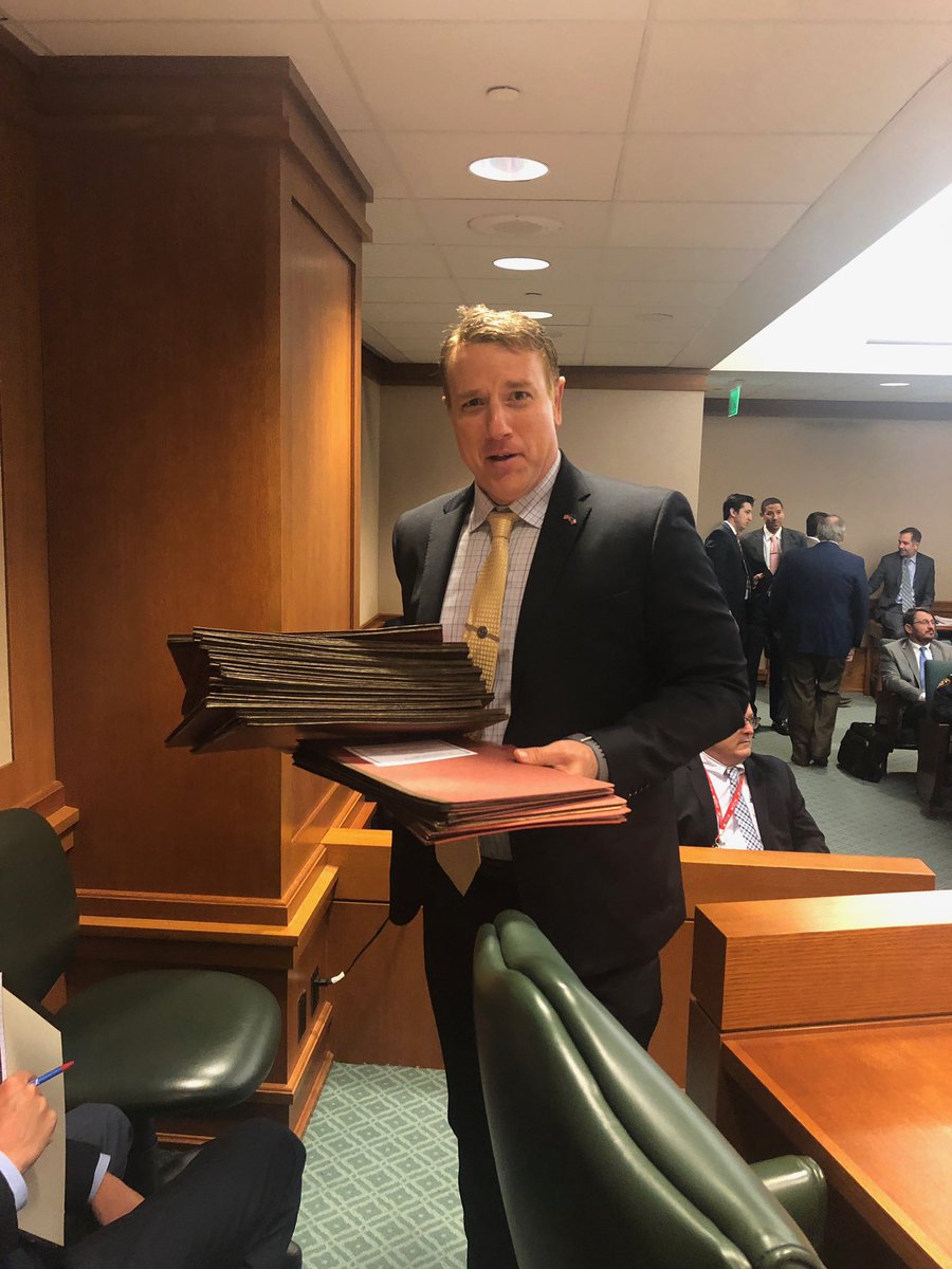 Such generosity happening in #txlege @TXSenateIGR with @FallonForTexas laying out everyone else’s bills (21 to be exact), but his own. Such a nice guy.pic.twitter.com/EfFT6rk62V