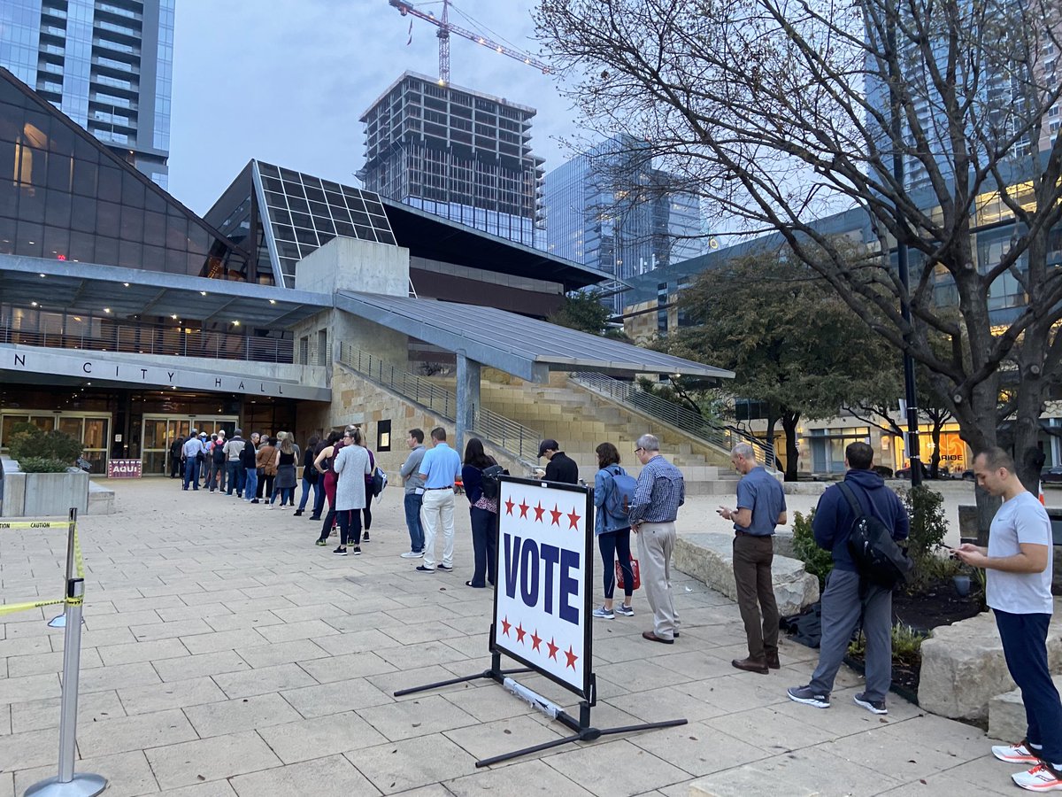 Line to vote @ #ATX City Hall this AM #VoteWarren #VoteBernie #VoteBiden #JustGetYourVoteOn #SuperTuesdaypic.twitter.com/VF6At4kpk5