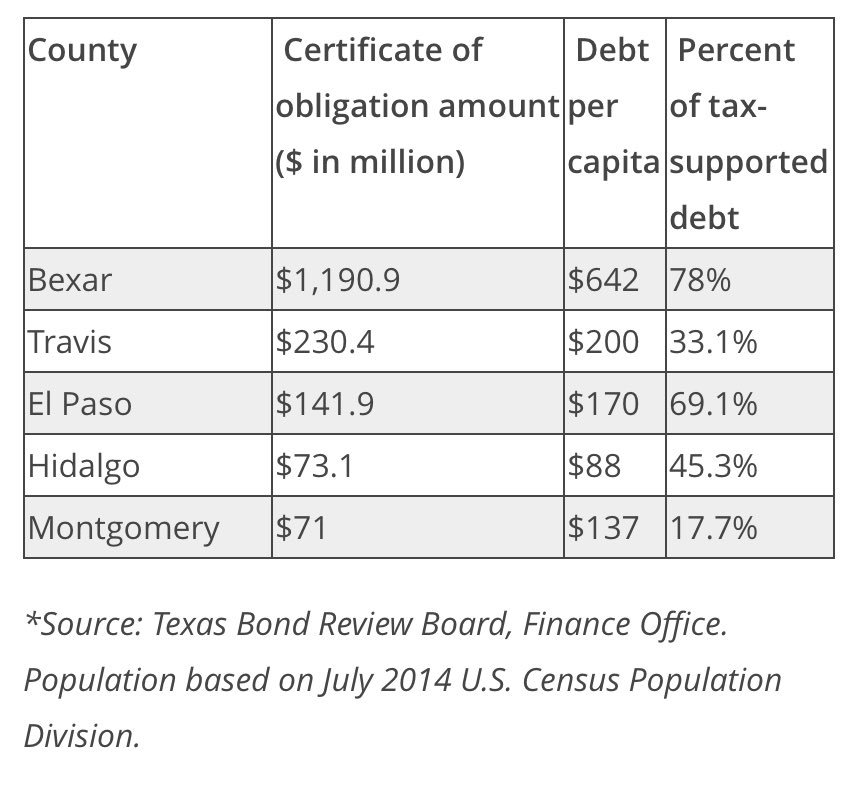 Eye-opening takeaway: several Texas counties have significant proportions of non voter approved debt.pic.twitter.com/kkLgNotcpm