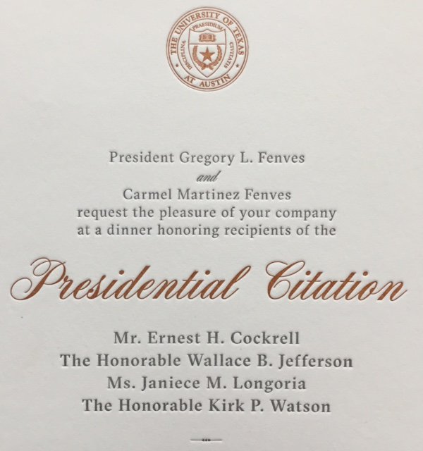 Receiving @UTAustin Presidential Citation from @gregfenves tonight. Such a gratifying honor. I'm very touched.pic.twitter.com/s5kYpELE9m