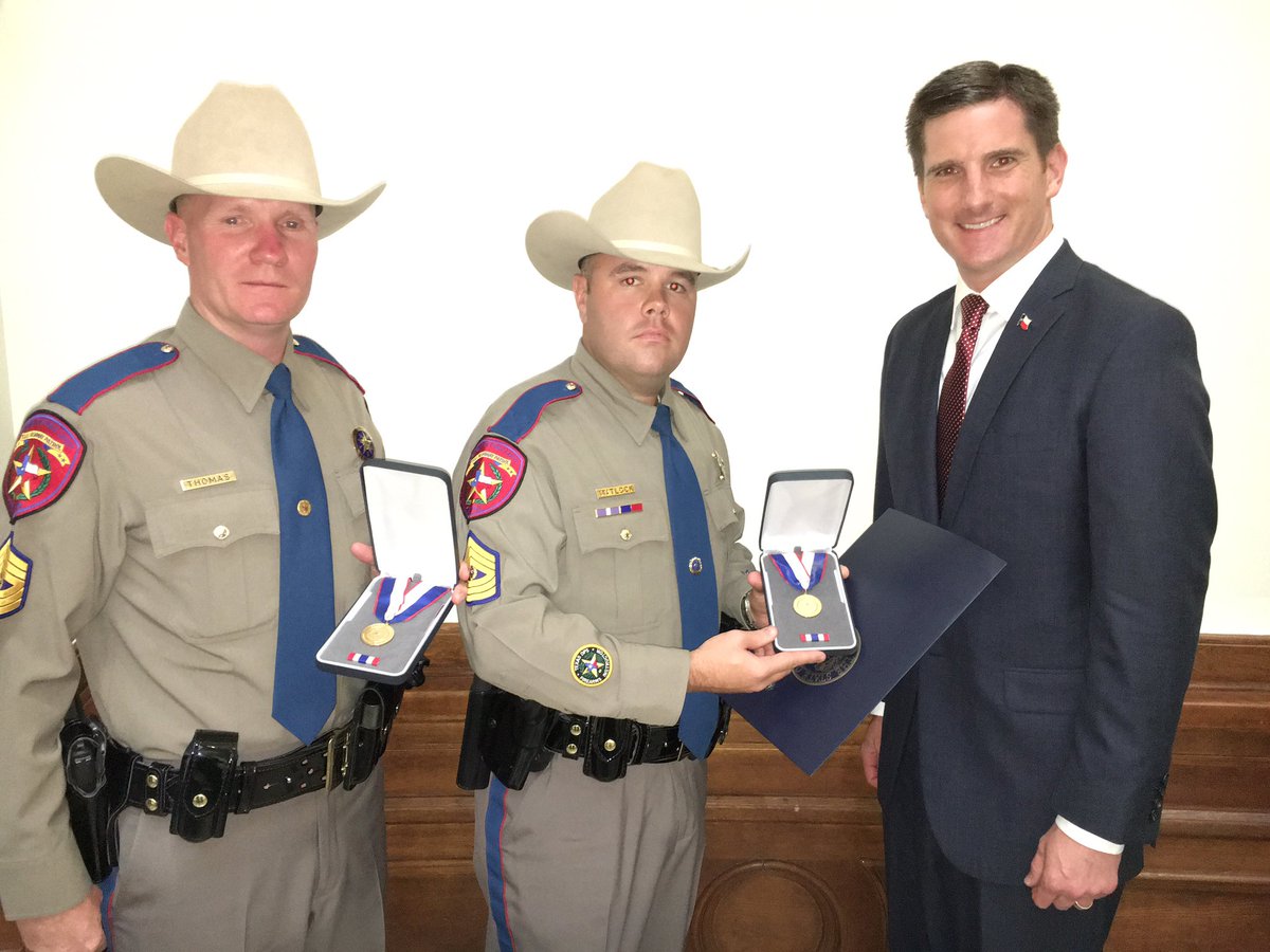 Proud to honor W. Tx. @TxDPS troopers Thomas & Matlock, both shot in line of duty, w/ Star of Texas Award! #txlegepic.twitter.com/pDC2fl26jc