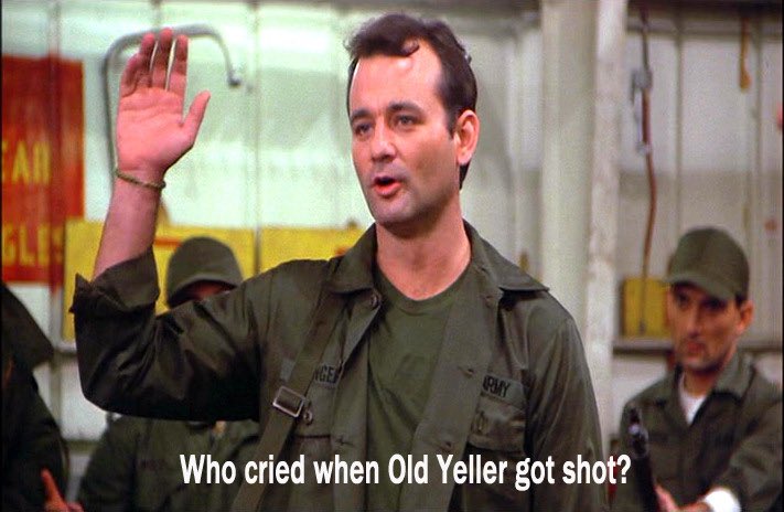 Changed dog's name to Old Yeller. American classic. ***spoiler alert***In Stripes, Bill Murray asks "who cried when Old Yeller died?"pic.twitter.com/5PLqxZ0ewr