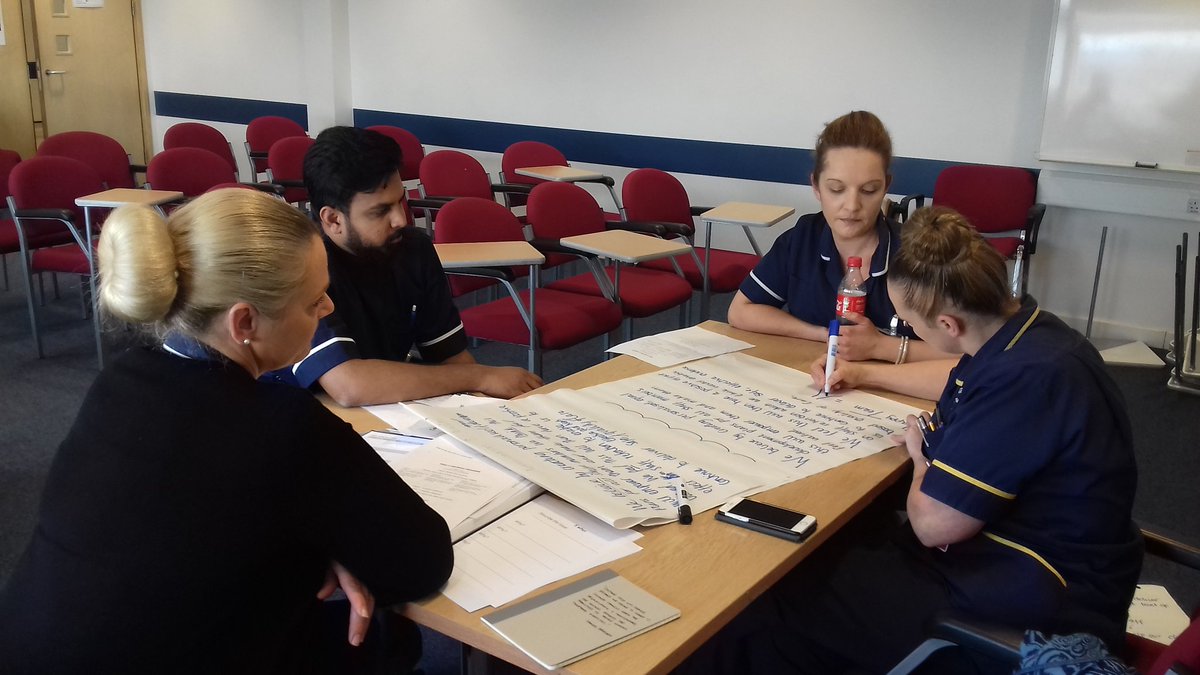 A team of dynamic Band 6 with Senior Sister Jemma Tulett in action. Planning for ward improvement programme. Blyth Ward Kingston Hopitalpic.twitter.com/8TOGsWxtYy
