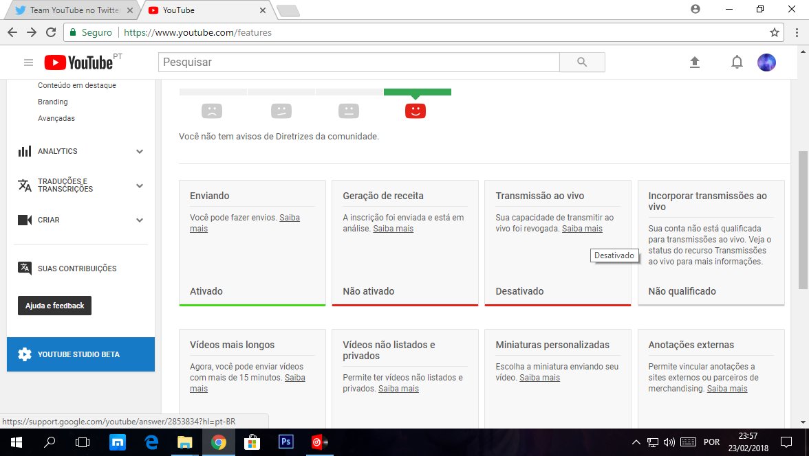 Já mandei feedback e espero ter as transmissões em direto liberadas no meu canal.
