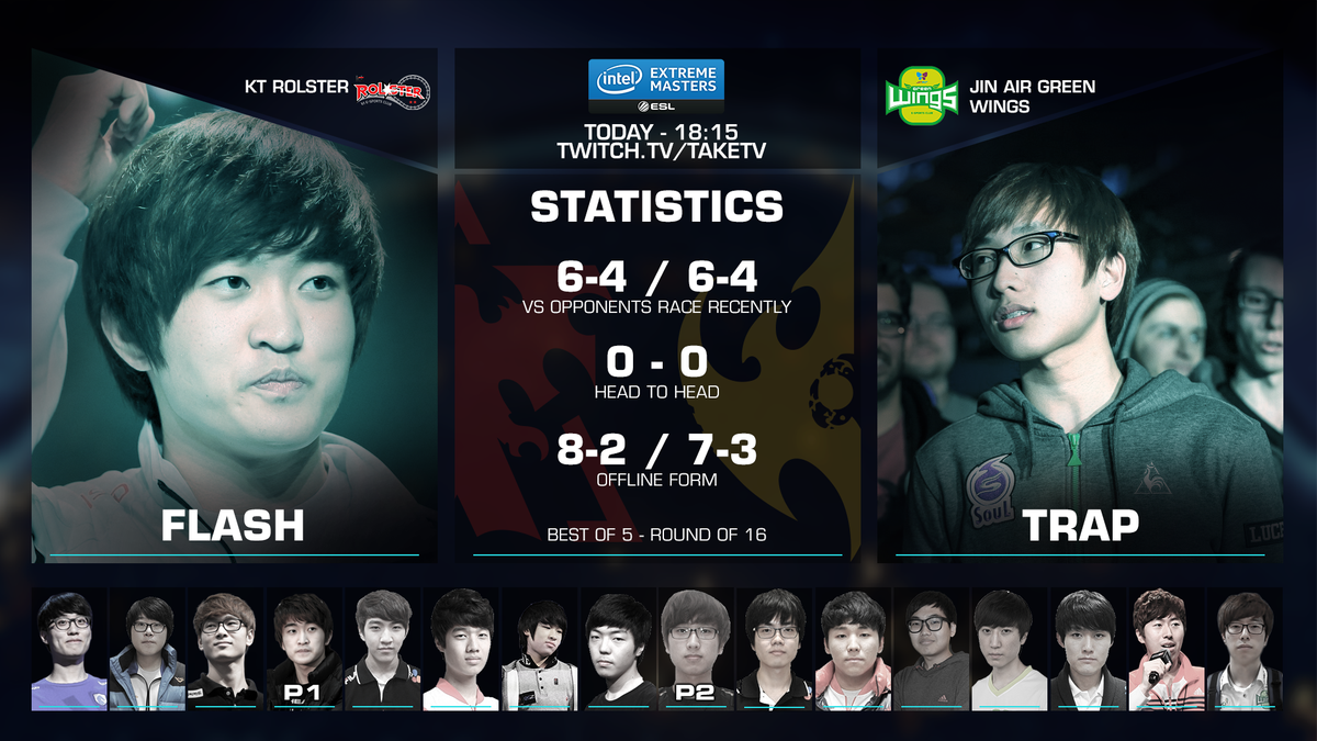Next up are @SC2FlaSh and @JinAirGW Trap on http://twitch.tv/TaKeTV #IEMKatowice feat. @NarutOSC2 & @RememberMeSc2pic.twitter.com/8vFGK3OYTq