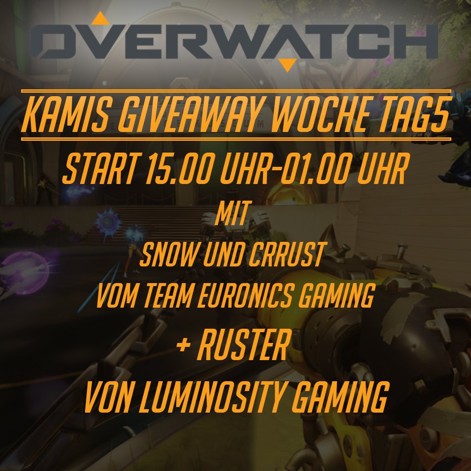 @Kami_katze7 "Tag5 Giveaway-Woche" Seid dabei, wenn Ruster, Snow und Crrust auf http://twitch.tv/TaKeTV_Overwatch … abgehen!pic.twitter.com/wo2PztqYHC