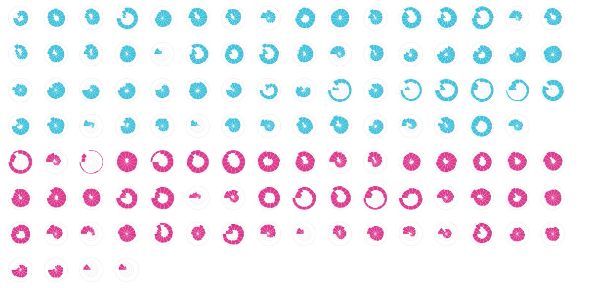 Cute visualization of student data. Girls => pink, boys => blue. More friends => body will be fatter. Hair is longer if online longer. talkative => bigger mouth. (Can Google Translate the page) http://www.guancha.cn/XiangFan/2017_11_08_433921_1.shtml … Credit