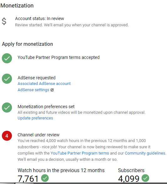Der YouTube Team Team My Channel is not monetization and 1000 sub and 4000 hour completed my channel https://www.youtube.com/features?o=U pic.twitter.com/fZeMqnsJo9