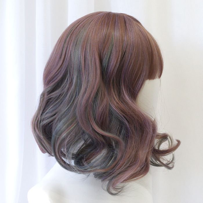パープルとブラウンのMIX!インナーカラーでグリーンがかったグレー