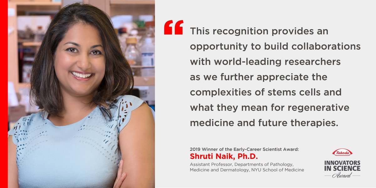 #RegenerativeMedicine, Dr. Shruti Naik and Dr. Michele De Luca! Learn about their work at the Award Symposium on April 26th at Shonan iPark. To register, visit http://www.nyas.org/2019Innovators#TakedaInnovators#StemCellspic.twitter.com/W2MvMSRgtA