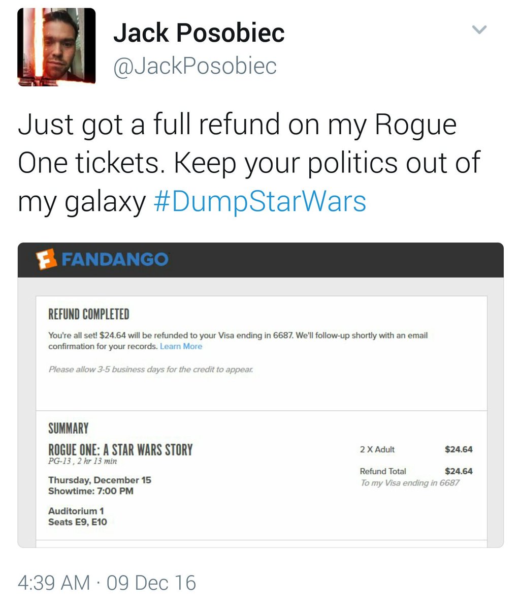 Well, damn, you mean I won't have people like him in the room when I go to see Rogue One? Guess I'll go see it!