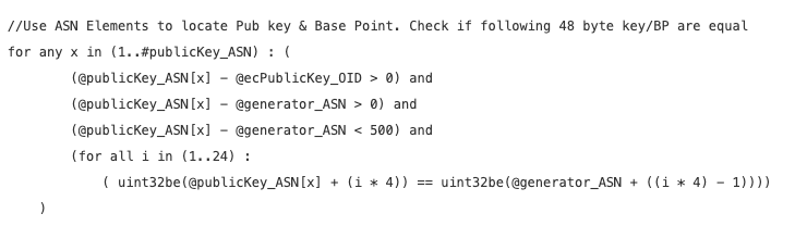 The rule seems to assume Public Key (PK) is equal to Base Point (BP). This is very exploit specific. For example,
