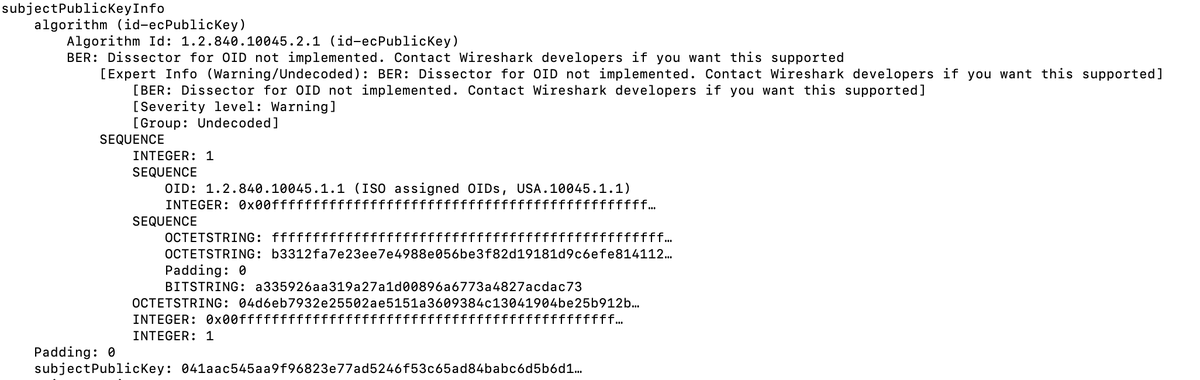 #Wireshark#ProTip : although the UI doesn't show#CurveBall related Curve Params yet (@WiresharkNews@Lekensteyn is working on it), you can use: tshark -r kudelski-vuln.pcapng -Y tls.handshake.certificate -O tls -ober.decode_unexpected:TRUE https://twitter.com/TalBeerySec/status/1219537211688996865 …pic.twitter.com/6BfzujYAob