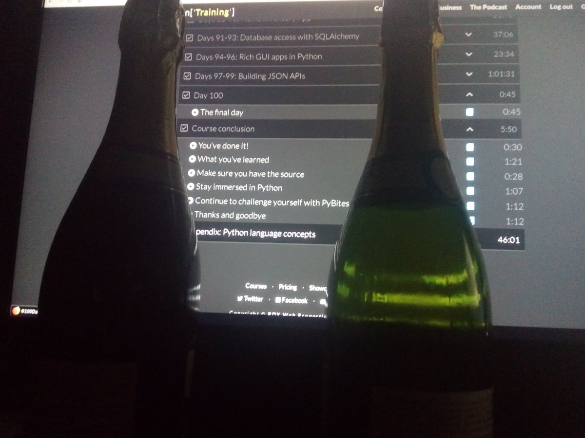 ! https://talkpython.fm/100days?s=pybites … #100DaysOfCode#Python#milestone everyone welcome! no age or anything! non alcoholic drinks
