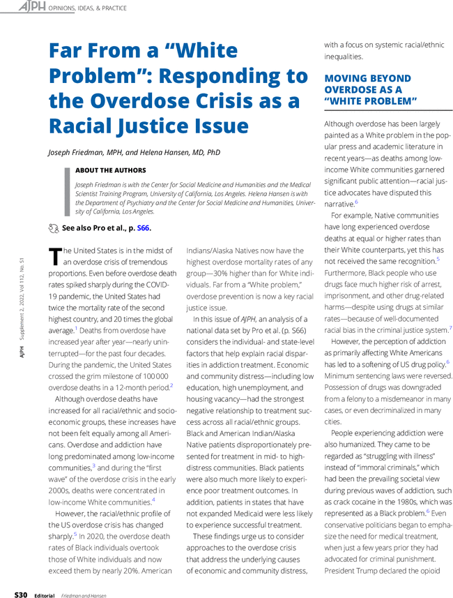 The "White Problem" narrative of addiction has long ignored that minoritized communities suffered disproportionately from US drug policy. Now, Black and Native overdose rates are higher than White. Overdose must be treated as a racial justice issue. https://ajph.aphapublications.org/doi/abs/10.2105/AJPH.2021.306698 …pic.twitter.com/wPWeJOuCtN