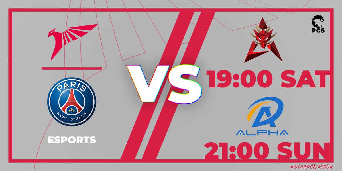PCS Summer is back this weekend! Week 2 we will be taking on HKA and Alpha 😬 Aiming to go 5 - 0 to start this split!! Tune on for all the action http://Twitch.tv/lolpacific  #BLEEDCRIMSON #ICICESTPARIS #PCSLOL pic.twitter.com/tmT0PsoCXl