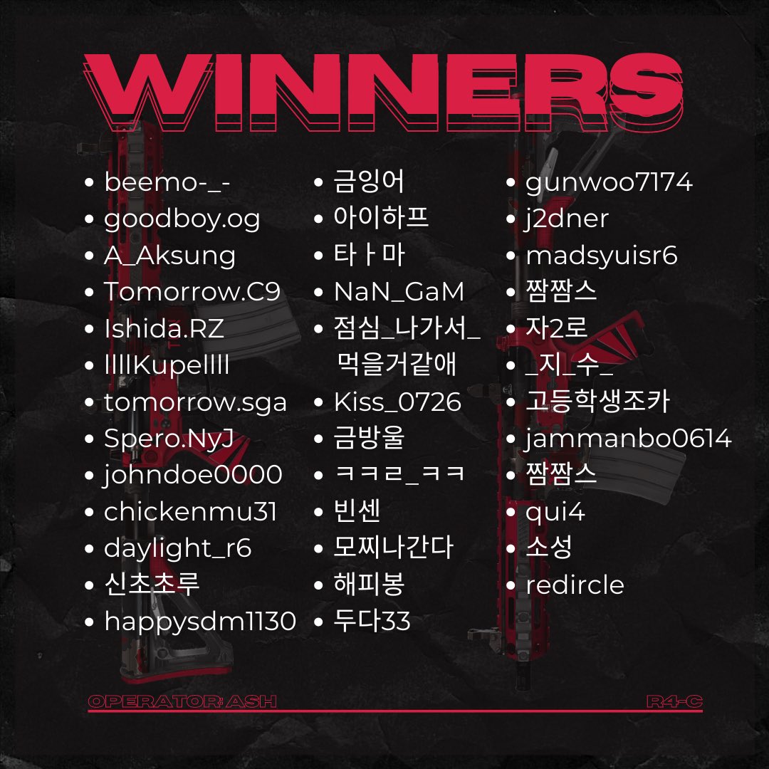 지금까지 스킨 코드를 획득하신 분들의 명단입니다!! 아직 ASH클립을 제출하셔서 스킨 코드를 얻으실 기회가 남아있으니 많은 제출 바랍니다.