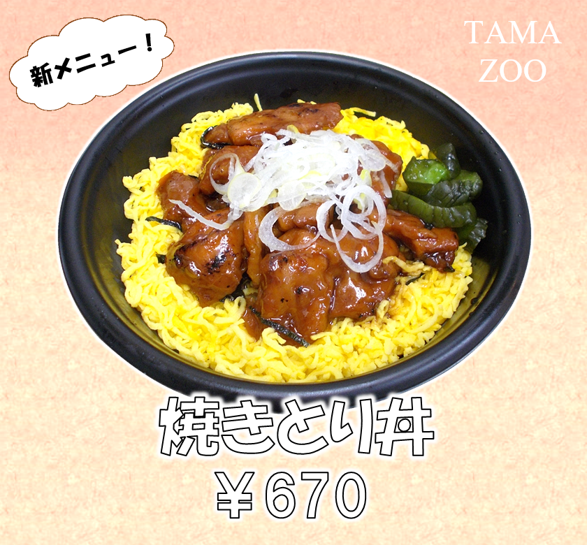 多摩動物公園内コアラ館下売店にて『焼きとり丼(税込670円)』が新登場! 焼き鳥と錦糸卵が食欲をそそるボリュームのある一品です。ぜひご賞味ください♪ご来店をお待ちしております。(販)